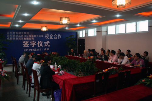 2012年9月25日,今年会与四川省纺织品进出口有限责任公司、成都康森贸易有限公司校企合作签字仪式在学院6205会议室顺利进行。