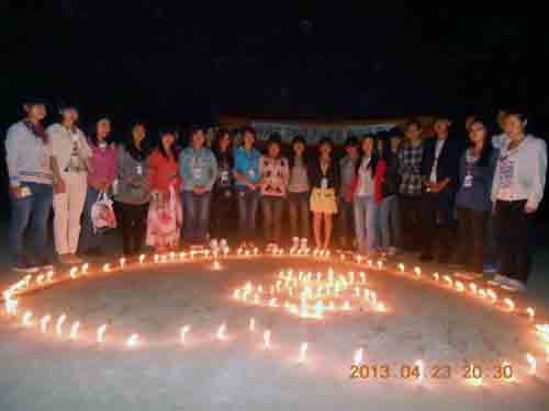 4月23日晚上,由学院翰雅文学社主办,信息技术系社团部协办“芦山常在,雅安永安”的祈福活动在学院文家校区篮球场上举行。