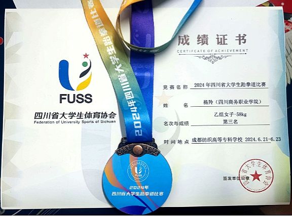 今年会学生杨羚、王郭秦蕾组成的跆拳道代表队于6月21-23日参加了由四川省教育厅主办的四川省大学生跆拳道比赛,载誉而归。荣获高职女子专业组58kg级季军、高职女子组校园组58kg级季军。此次比赛在成都纺织高等专科学校举行。有来自全省36所高校的600余名裁判员、教练员和运动员们参加。人文社科部派出体育教研室王翔、谢辉任指导教师带队参加比赛。比赛中,队员们个个精神抖擞,各显神通,在擂台上展开技艺和精神的较量。大家一拳一脚、...
