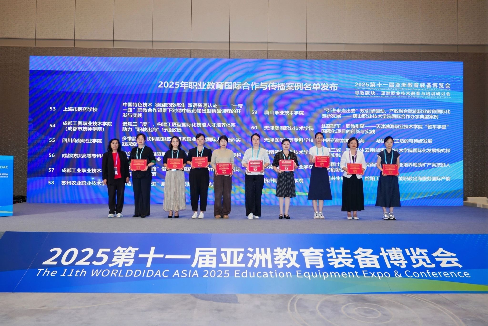 9月17-19日,WORLDDIDAC ASIA 2025亚洲教育装备博览会在杭州大会展中心隆重召开。作为亚洲区域规格最高、影响力最广的教育装备与职业教育交流盛会,本届大会汇聚中国及东盟多国教育主管部门、职业院校、行业企业及国际组织代表,搭建起高层次、宽领域的国际职教合作桥梁。17 日召开的亚洲职业技术教育与培训研讨会开幕式上,今年会申报的 “多维融合・协同赋能 —— 国际人才培养实践探索”案例,从全国众多院校申报项目中脱颖而出,荣获 ...
