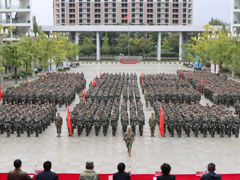 晨起军歌迎晓雾,暮归正步踏余晖。10月22日上午,2025级学生军训结训典礼分别在文家、和盛校区举行。伴随着雄壮激昂的《义勇军进行曲》,五星红旗冉冉升起,全体在场人员肃立行注目礼,以庄重的升旗仪式拉开了结训典礼的序幕。军姿飒爽,戎装上阵。在军训教官的指引下,参训学生进行军训成果汇报表演。他们步伐铿锵如鼓点,口号嘹亮震长空,以整齐的军容和挺拔的英姿,展现了商院学子朝气蓬勃、坚毅果敢的精神风貌。典礼上,青羊区委常委、...