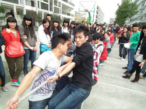 为丰富大学生课余文化生活,凝聚班集体荣誉感,培养团队合作意识,根据学院党委大力推进校园文化建设的号召,我系于2011年11月7日中午13:00,在学校三教教学楼前举行了第二届拔河比赛。