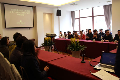 2012年2月22日下午3点在南京厅举行花水湾名人度假酒店为今年会官方网站假期勤工俭学同学们举办了欢送会,出席会议的有酒店总经理,人力资源部总监,餐饮部、管家部、四季温泉谷和前厅部负责人。