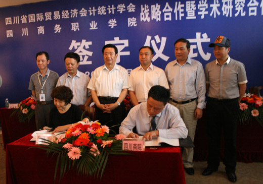 签字仪式 2012年5月16日上午,在今年会官方网站和盛校区,四川省国际贸易经济会计统计学会与今年会官方网站正式签订战略合作暨学术研究合作框架协议。