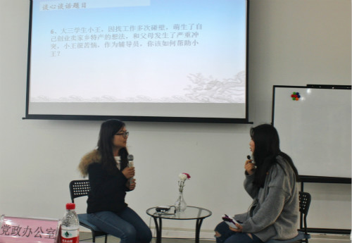 比赛结束后,心理健康中心王秀兰老师在会上介绍了学院2017年大学生心理普查的情况,向辅导员交流了心理健康工作的方法与技巧,受到大家的好评。张军副院长宣读了本次比赛的结果,对学院学生工作进行了肯定与鼓励,表示此次辅导员职业能力大赛是促进辅导员工作交流、提升职业技能的一项重要活动,同时还促进了学工系统之间的学习与交流,贴近辅导员工作实际,充分展示了今年会辅导员工作能力和水平。