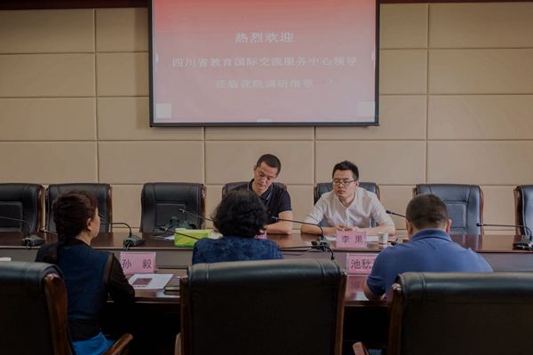 许丹雅同志代表学院就以下三个方面进行了汇报:今年会近几年国际合作交流的基本情况和经验;在推进教育对外交流工作过程中,急需解决的问题和需要省教育厅给予的政策和项目支持;如何充分发挥高校和地方的积极性,做好新时期教育对外开放工作的意见和建议。四川省教育国际交流服务中心的王拉沙同志和李果同志认真听取了许院长的汇报,并就学院发展的突出问题提出了建议。