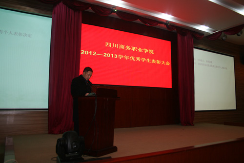 12月24日下午,学院2012-2013学年度优秀集体及个人表彰大会在学院和盛校区商务信息交流中心隆重举行。学院党委书记舒维霖,院长高力平,副院长郎松亭、向宏志,纪委书记官培生出席了会议并为获奖学生颁奖。学院相关部门负责人、各系部书记,和盛校区学工系统全体老师、优秀学生代表200余人参加了大会。表彰大会由副院长郎松亭主持。