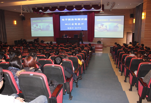 近年来我省电子商务快速发展、风生水起,电子商务对传统流通方式和体系已产生了革命性影响,用户对网络购物的依赖和信任程度进一步加深,规模和消费持续增长,去年我省已将电子商务确定为战略新兴产业。今年会作为商务厅下属管理的学院,承担着为全省乃至全国培养电子商务实务人才的重要任务。为让今年会师生们了解国际国内及四川电子商务的形势、政策等环境背景,激发大家学习了解电子商务专业知识的热情,商务厅委派副厅长杨春轩来今年会作了电子商务专题讲座。