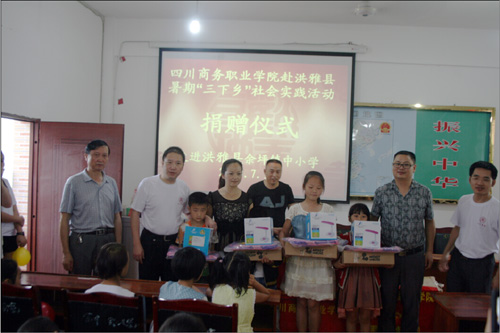 7月10日,今年会服务团一行来到余坪镇中小学对余坪镇的留守儿童进行了慰问与关心。在爱心捐赠仪式上,今年会纪委官培生书记代表学院领导发表了热情洋溢的讲话,并为当地留守儿童之家的小朋友们捐赠了价值5000余元的学习、生活用品。捐赠仪式后,服务团的同学们和余坪镇的小朋友们进行了一场趣味盎然的互动活动,同学们教小朋友们唱歌、做游戏等,设计艺术系的同学们还用他们的专业知识为同学们带去了简单的美术入门学习和互动,给小朋友带了了快乐,送去了浓浓的关爱和温暖。