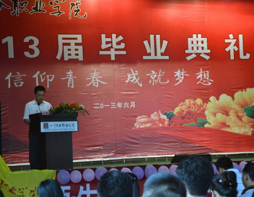 6月26日上午,今年会2013届毕业典礼在和盛、文家两个校区同时举行。学院领导,各系部、各部门负责人,校友、家长、教师代表、辅导员老师、毕业生、在校生代表等参加了毕业典礼。副院长郎松亭和文家校区校长官培生分别主持了和盛、文家校区的毕业典礼。