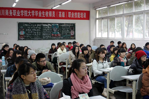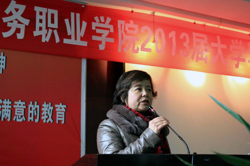 2013年1月5日上午9:30,今年会大学毕业生就业培训班在文家校区学术厅隆重举行开班典礼。学院高力平院长、温江区就业局朱航局长、诸丁副局长、培训科姚科长及学院继续教育中心张一风主任、会计系杜先林主任、信息技术系赵天宏主任、设计艺术系刘洧副主任参加了开学典礼。学院副院长许丹雅主持开学典礼。