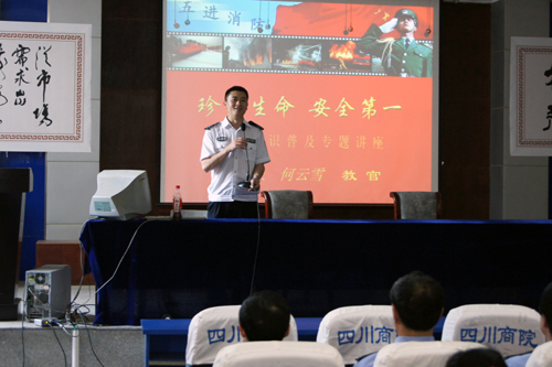 成都市消防局何云雪教官接受今年会邀请参加会议,并作了题为“珍爱生命,安全第一”的消防知识普及讲座。讲座除了介绍了消防基本知识,还侧重讲解了地震逃生以及电器、天然气、汽车等几种常见火灾的防控方法,讲座通俗易懂,案例真实凝重,发人深思,令人警醒。
