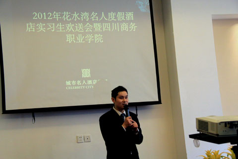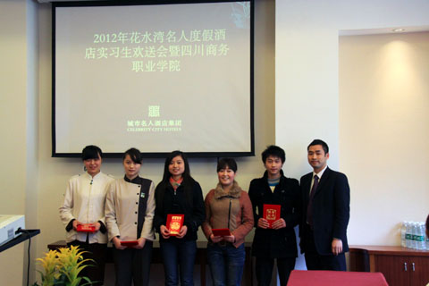 2012年2月22日下午3点在南京厅举行花水湾名人度假酒店为今年会官方网站假期勤工俭学同学们举办了欢送会,出席会议的有酒店总经理,人力资源部总监,餐饮部、管家部、四季温泉谷和前厅部负责人。