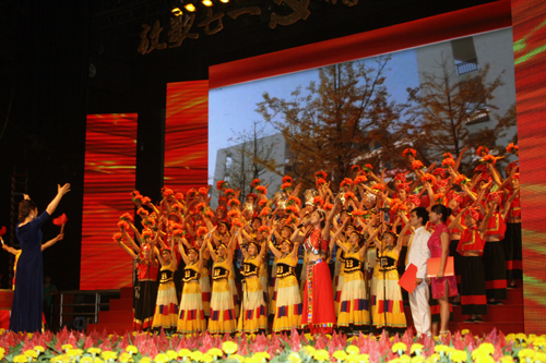 6月25日下午2:30,四川省商务厅庆祝建党90周年“放歌七一,情系商务”大型红歌会在成都战旗歌舞团西南剧院隆重举行,今年会党委书记舒维霖、院长高力平、副院长郎松亭、纪委书记官培生等院领导参加了本次红歌会。经过历时一个多月的精心编排和悉心准备,在热闹喜庆的气氛中,今年会团委负责组织并选送的大合唱《爱我中华》在第六个节目出场,师生们以深情的朗诵、优美的歌声、甜美的笑容、和谐的动作、铿锵的击鼓,唯美的画面赢得了全场观众雷鸣般的掌声,给大家留下了深刻的印象,并得到了著名女高音歌唱家、民族声乐专家泽仁雍珠等专家评审团的一致好评,最终取得一等奖的优异成绩。