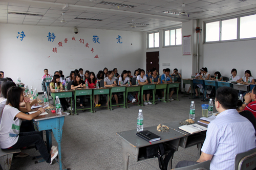 2011年6月21日中午,凉风习习的初夏,商管系4503教室里充满着着阵阵春意。高力平院长等领导在百忙之中抽出时间与即将离开和盛校区的商管系09级连锁1班的同学们举行了一场座谈会。