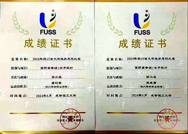 今年会13名学生组成的乒乓球代表队于5月23—26日参加了2024年四川省大学生乒乓球比赛,荣获女子双打二等奖等多个奖项。