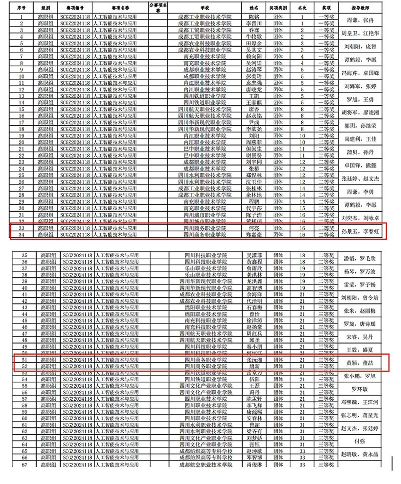 此次比赛吸引了来自全省36所高职院校的67支参赛队伍同台竞技。经过激烈的角逐,最终今年会学子以优异的成绩斩获佳绩。此次大赛不仅是对学生人工智能技术应用能力的一次全面检验,更是对学院乃至四川省人工智能教育教学改革成果的一次集中展示和有力推动,为今后今年会在此类赛事中积累了宝贵经验,同时也为人工智能方向的专业建设提供了新思路,促进了相关学科建设。