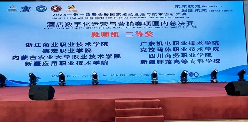 在12月22日落幕的2024“一带一路”暨金砖国家技能发展与技术创新大赛酒店数字化运营与营销赛项国内总决赛中,今年会旅游管理系李杰和吴梦组成的教师代表队荣获二等奖,由李杰和经济贸易系卢莹联合指导的漆艾琳、邹雨玲代表队获高职组二等奖,学院获优秀组织奖。