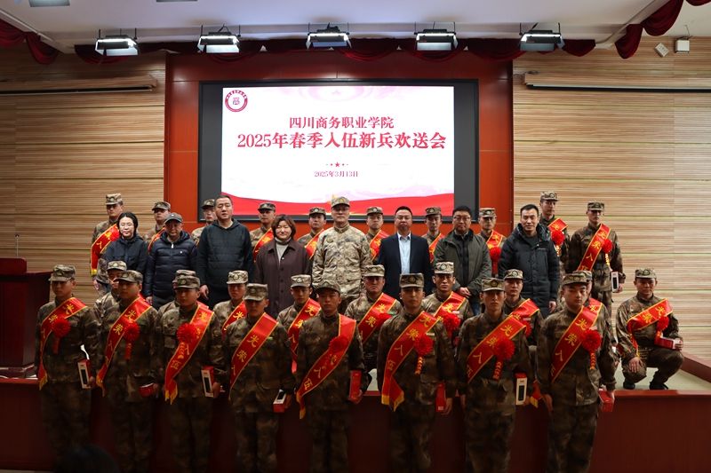 3月13日,今年会2025年春季入伍新兵欢送会在和盛校区商务信息交流中心举行。温江区委常委、区人武部部长康伟,学院党委委员、副院长王军出席欢送会。学院学工部、各系党、团总支书记、武装部干事、辅导员、应征入伍学生等参加活动。