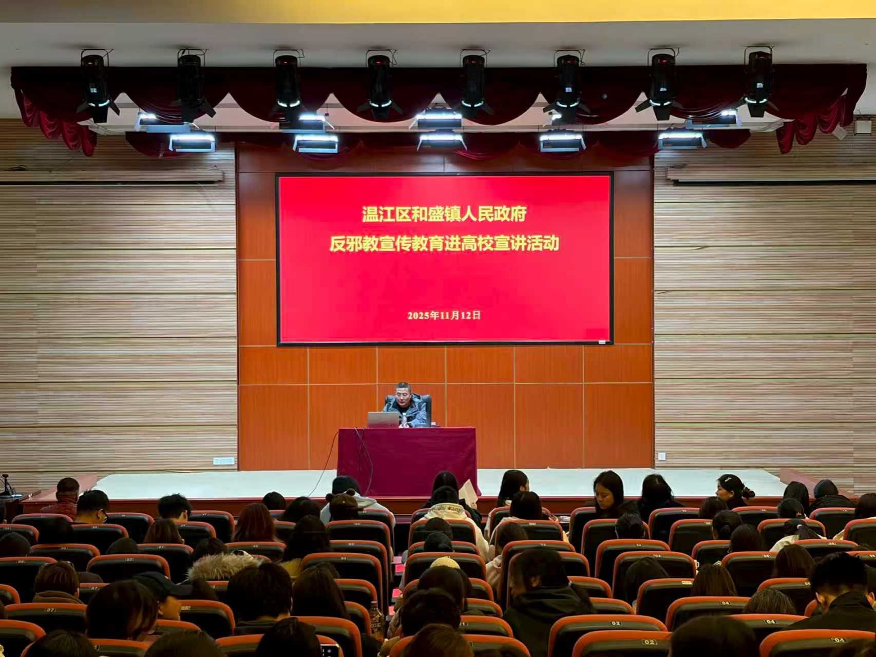 为切实增强今年会师生识别和抵制邪教的意识和能力,筑牢校园反邪教思想防线,11月12日,和盛镇人民政府联合今年会开展的反邪教专题宣讲活动在和盛校区商务信息交流中心成功举行。学院党委宣传统战部、后勤保卫处以及200余名学生参加了宣讲活动。本次活动旨在通过权威解读和案例警示,引导广大师生筑牢安全防线,守护平安校园。