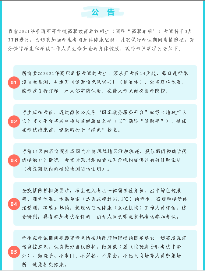 四川省2021年高职单招考试防疫公告