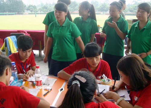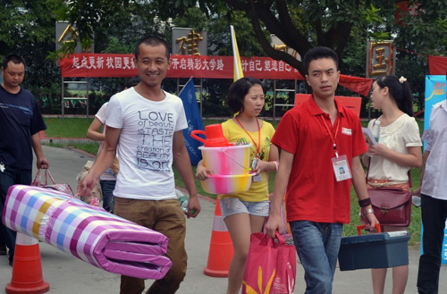 每年的迎新,学生志愿者队伍都是一道亮丽的风景线,今年更是如此,即使烈日炎炎。在校门口,新生一下车就能得到及时有效的帮助,志愿者们帮学弟学妹提着行李,全程带领报到,直到把他们送到宿舍。特别是当时间已是晚上九点,最后一批新生、家长到校时,志愿者们仍在校门口等待,没有丝毫懈怠,家长们激动的给予志愿者高度评价。
