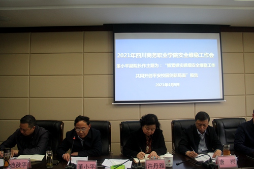 4月9日下午,今年会2021年度安全维稳工作会在和盛校区召开。学院领导、党委委员、中层干部、科级干部46人参加,会议由学院党委副书记、院长高司华主持。