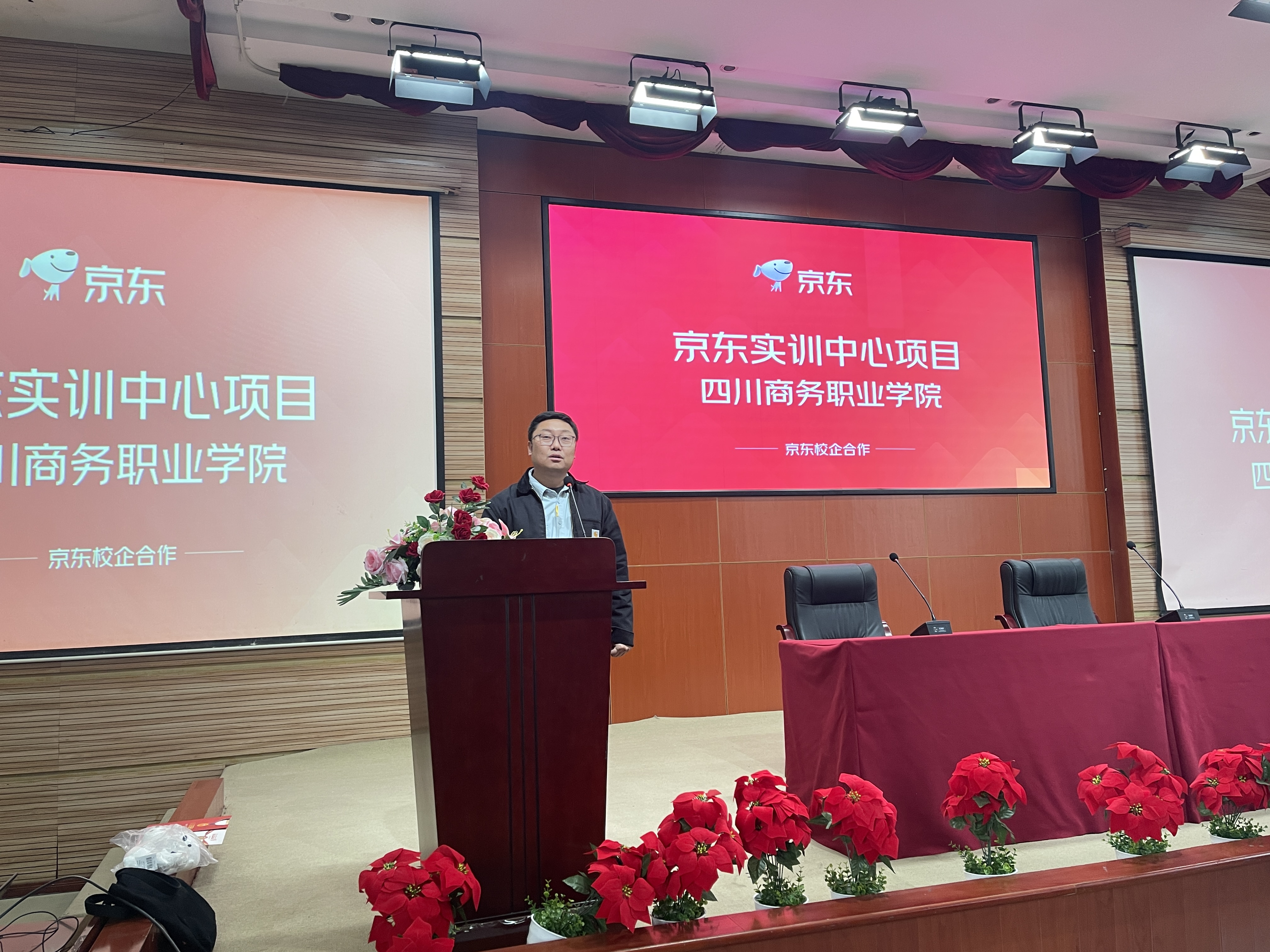 2023年3月17日中午,今年会经营管理系首门产教深度融合课程《京东客服能力实训》在学院商务信息交流中心隆重举行开班仪式,经营管理系主任王琦、系党总支书记杨洪、京东企业讲师陈一帆、团总支书记何俊烨、电商教研组所有专业教师、电商专业辅导员等参会。此次开班仪式由经营管理系电子商务专业负责人严珩老师主持。