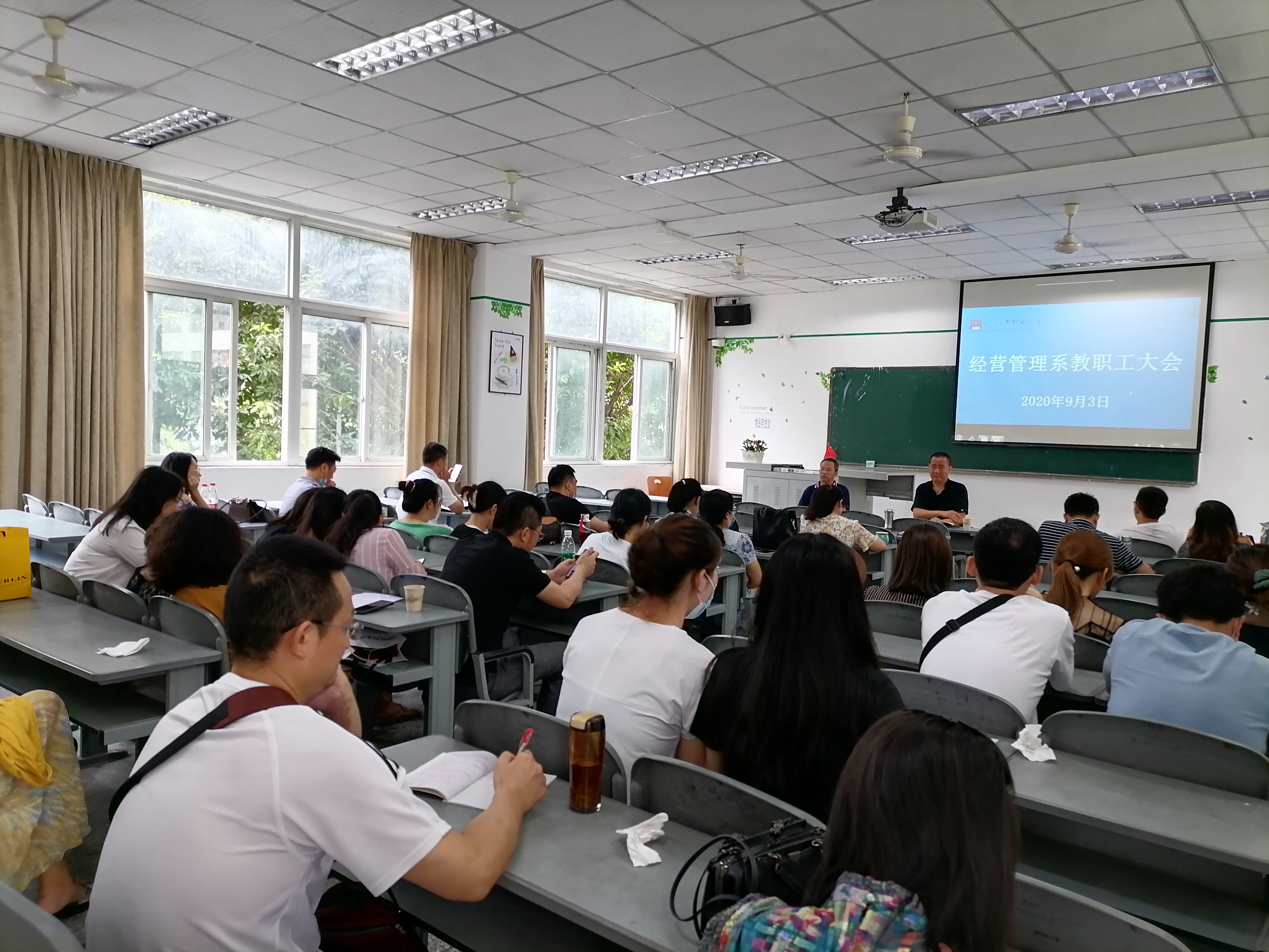 202093日上午9:30,经营管理系全体教职工于第一教学楼202室召开全系教职工会议。对本学期的重点工作进行了部署。会议由系主任梁栋主持。
