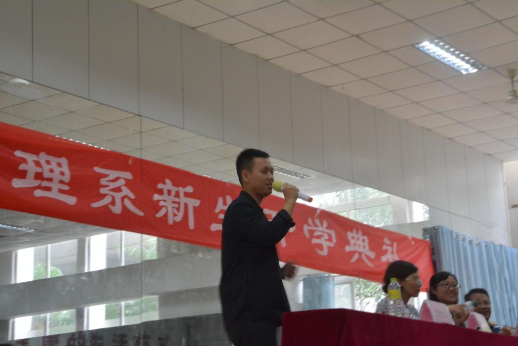 典礼上,梁栋主任首先对17级大一新生的到来表示了热烈的欢迎,向同学们介绍了专业师资和专业特色,介绍了我系实训室和校外实习基地以及办公区域分布情况。接着,梁主任向大家分享了摘自人民日报的文章《沉睡中的大学生:你不失业,天理难容!》。苦口婆心,耐心说教,为的是让同学们引以为戒,不浪费生命,不浪费青春。最后,梁主任向同学们提出以下几点希望: