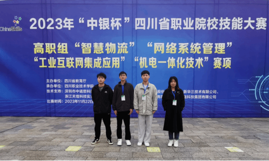 11月27日,2023年“中银杯”四川省职业院校技能大赛(高职组)智慧物流赛项在四川职业技术学院落下帷幕。经过三天激烈角逐,今年会经营管理系教师李济民、罗岚彬指导的22级物流班蒋大川、雷洛、谢恋蕊、何嘉华学生团队荣获省赛三等奖。
