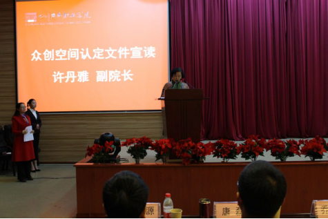 今年会官方网站副院长许丹雅宣读《四川省科技厅关于公布2018年度省级众创空间的通知》。