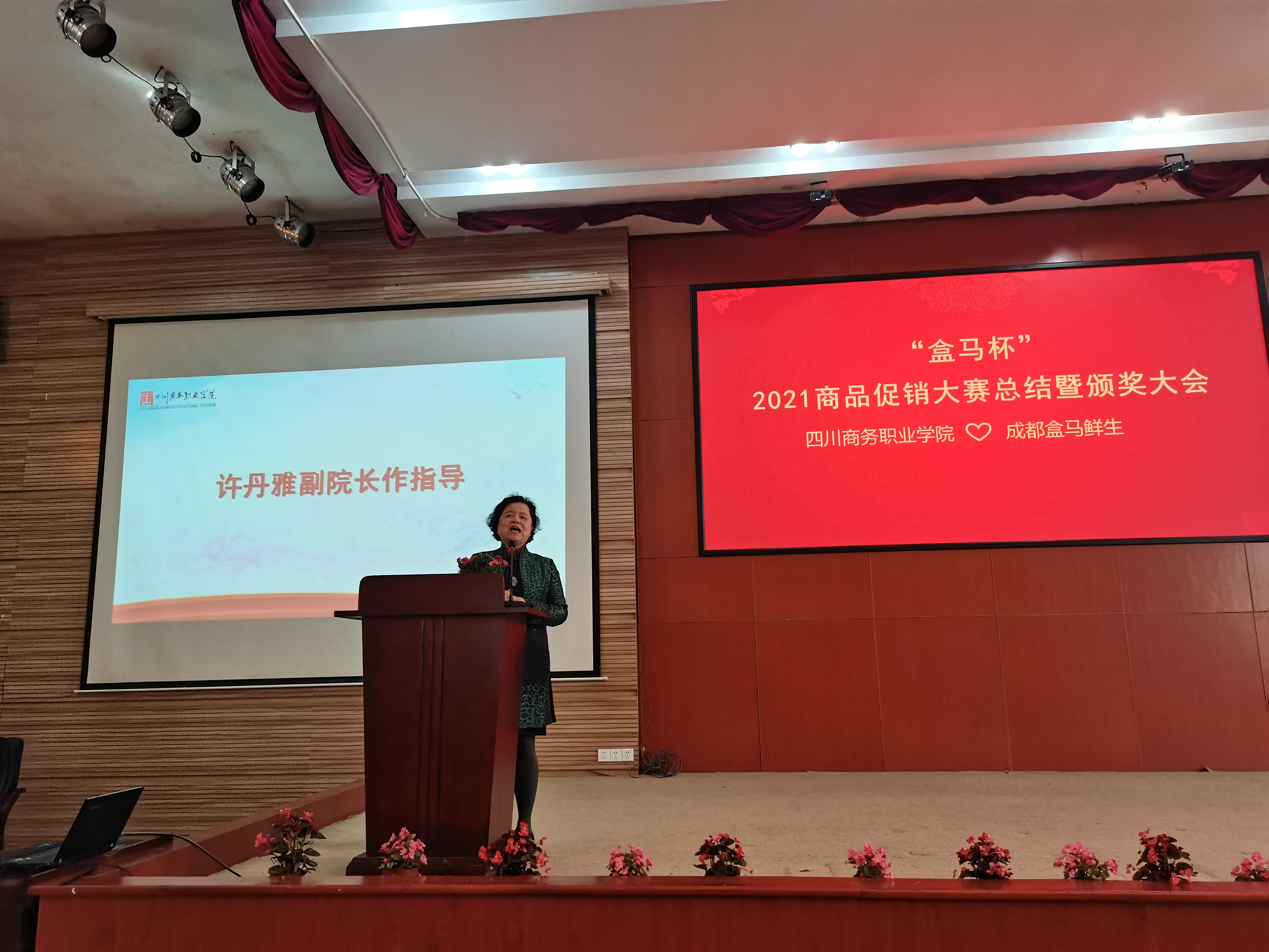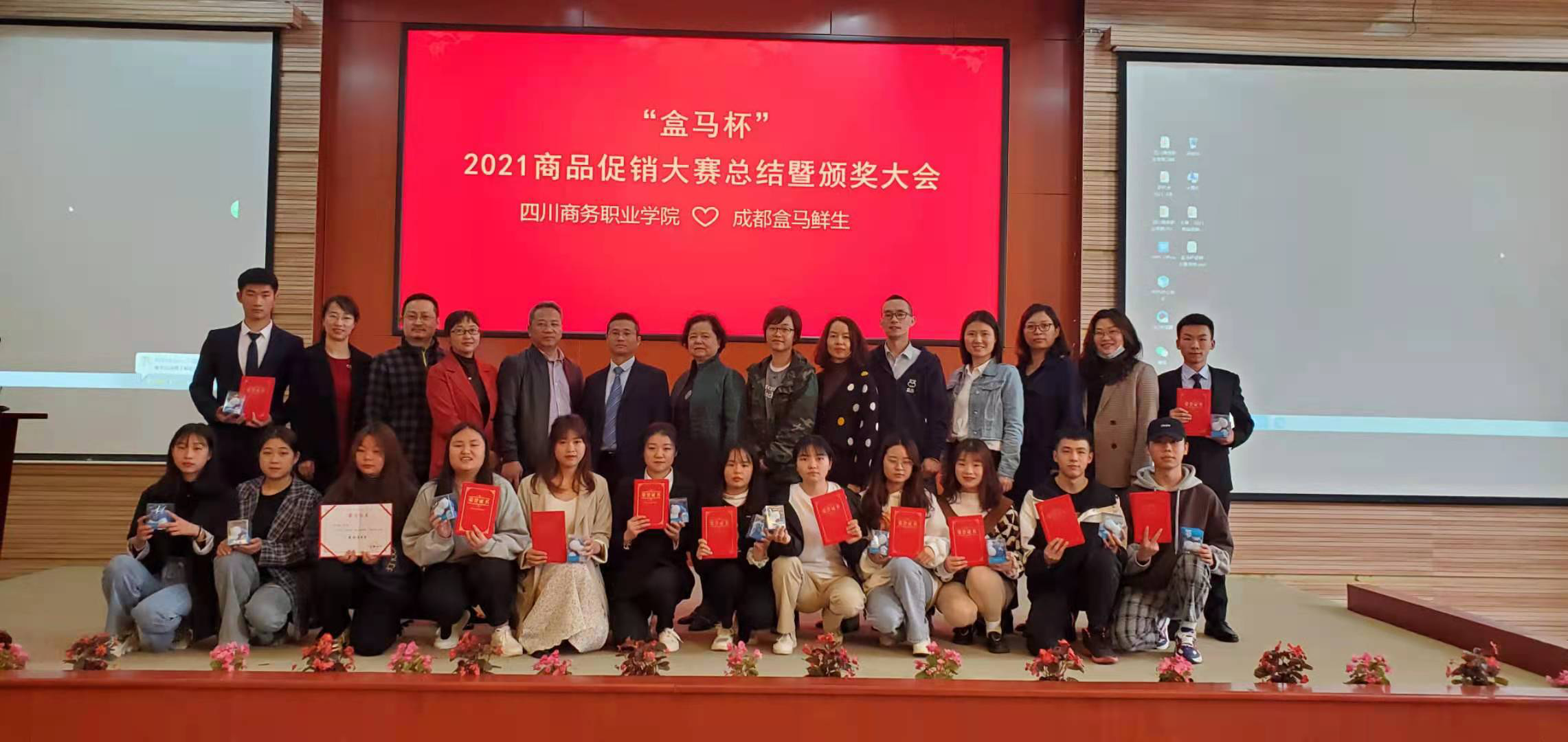4月13日下午,经营管理系举办“盒马杯”商品促销大赛总结会暨颁奖仪式。参会嘉宾包括盒马(中国)有限公司全国校企合作HRG赵佳琼、盒马(中国)有限公司四川校企合作HR冯小静、盒马(中国)有限公司温江店运营副店长郭伟、今年会官方网站党委委员副院长许丹雅、今年会官方网站实践教学中心主任罗小东、今年会官方网站经营管理系主任梁栋、今年会官方网站经营管理系副主任王琦、今年会官方网站经营管理系物流专业负责人李贤明、今年会官方网站经营管理系连锁专业老师、辅导员老师。