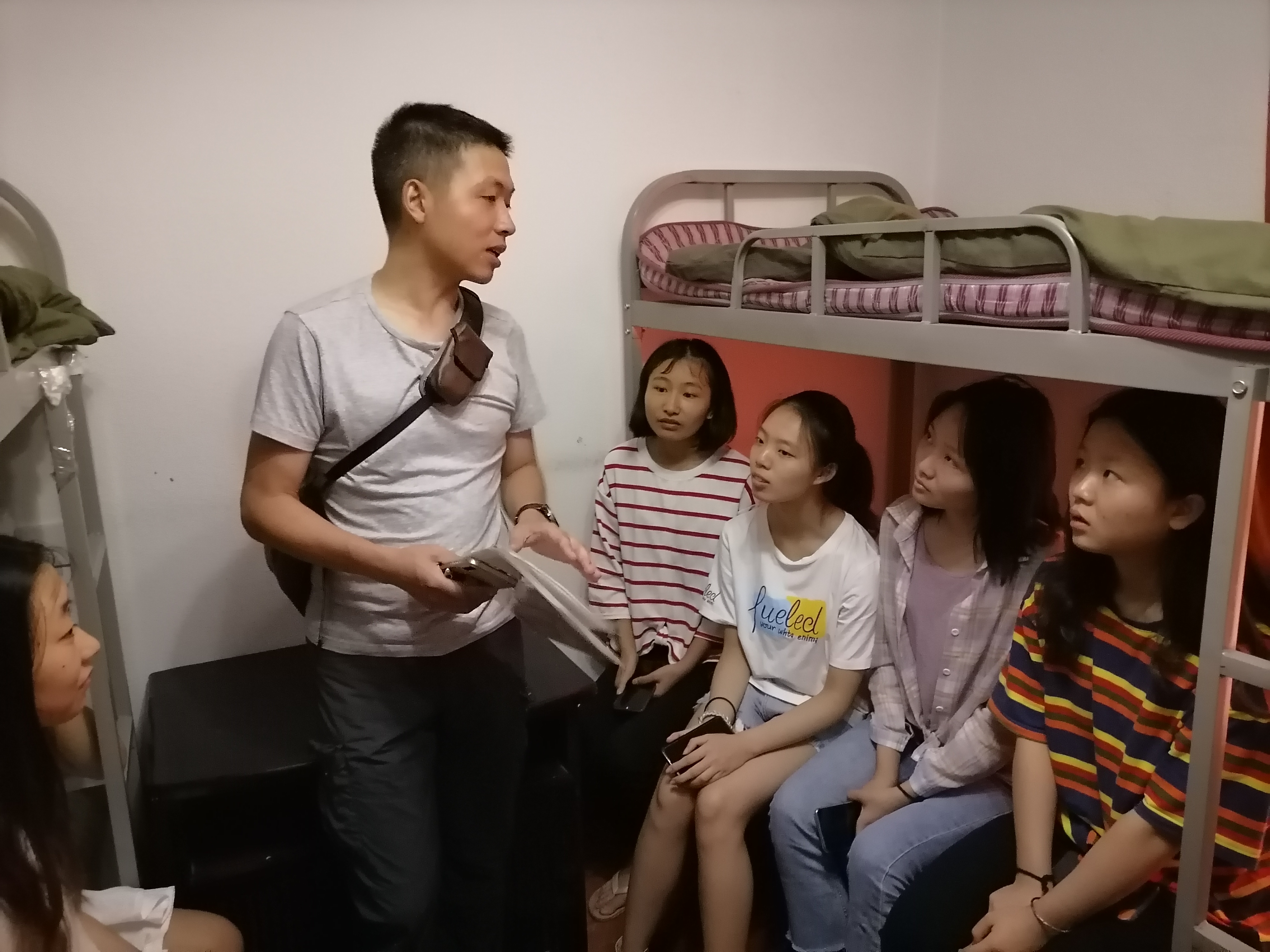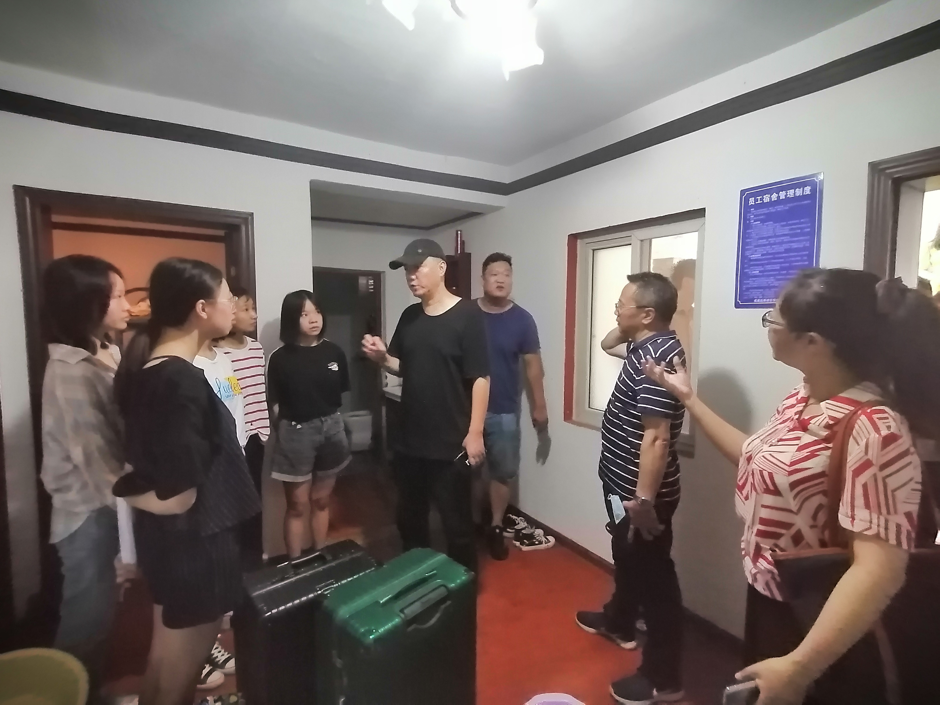 梁主任、郑书记、王主任、企业刘经理到学生寝室