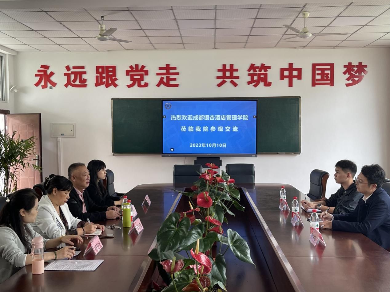 10月10日,成都银杏酒店管理学院继续教育与国际交流学院副院长罗宣华率领该校银杏甄选直播团队来学院交流座谈,学院党委委员、经济贸易系主任朱贵水及专业相关老师参加了座谈。