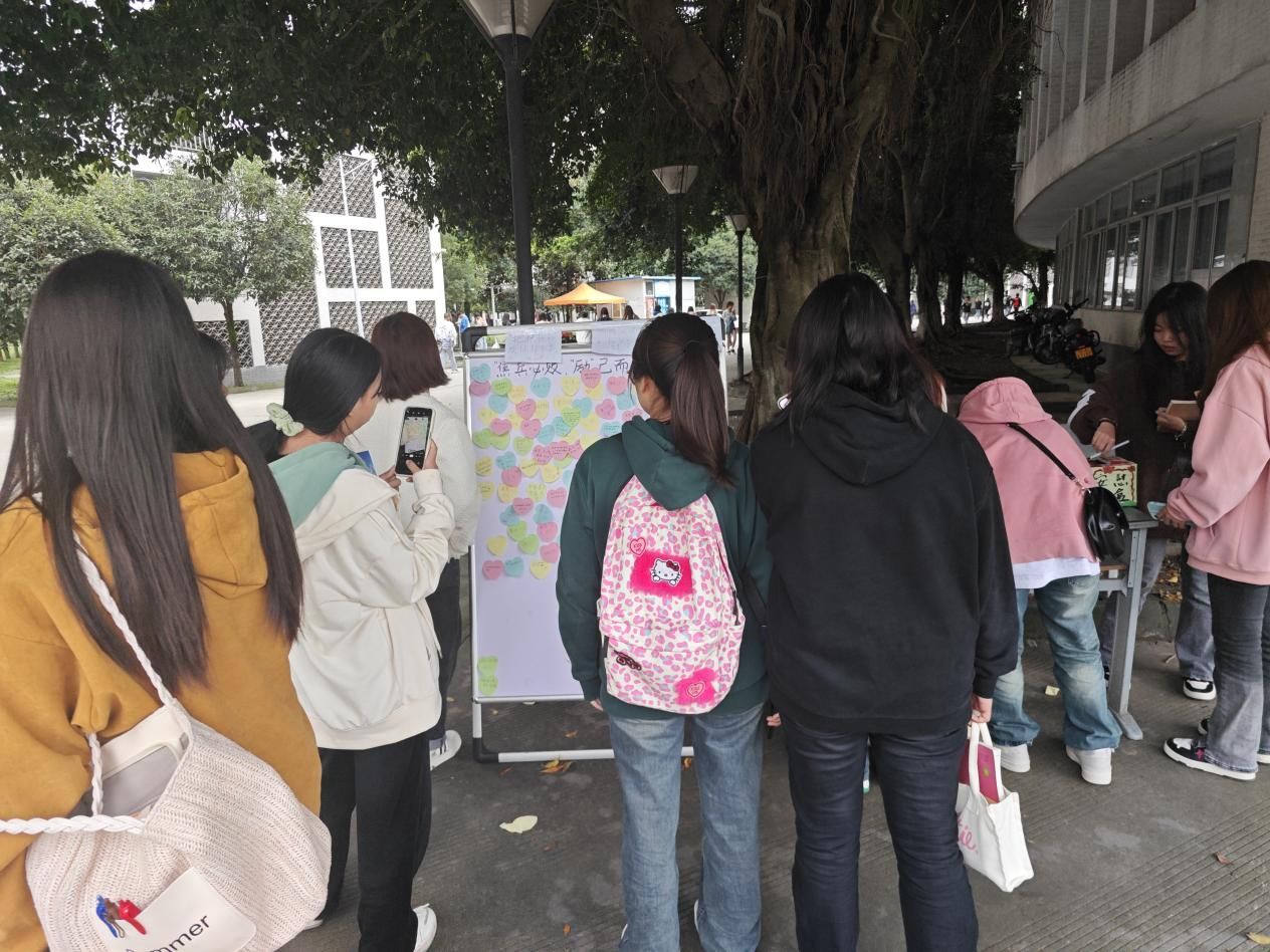 以习近平同志为核心的党中央高度重视和关心广大学生的心理健康工作,教育部等十七部门印发了《全面加强和改进新时代学生心理健康工作专项行动计划(2023—2025年)》,指出要将学生心理健康教育融入教育教学、管理服务和学生成长各环节,纳入“三全育人”大格局。在第32个“世界精神卫生日来临之际,经济贸易系于2023年10月10日至20日在和盛校区篮球场开展了以“‘焦’兵必败,‘励’己而胜”为主题的交换心情盲盒活动。