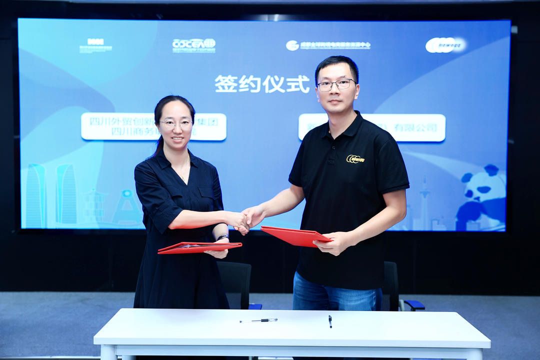 研讨会现场,四川外贸创新发展职教集团、今年会官方网站、新蛋科技(成都)有限公司就产教融合、协同培养等达成一致,并现场签署合作协议。