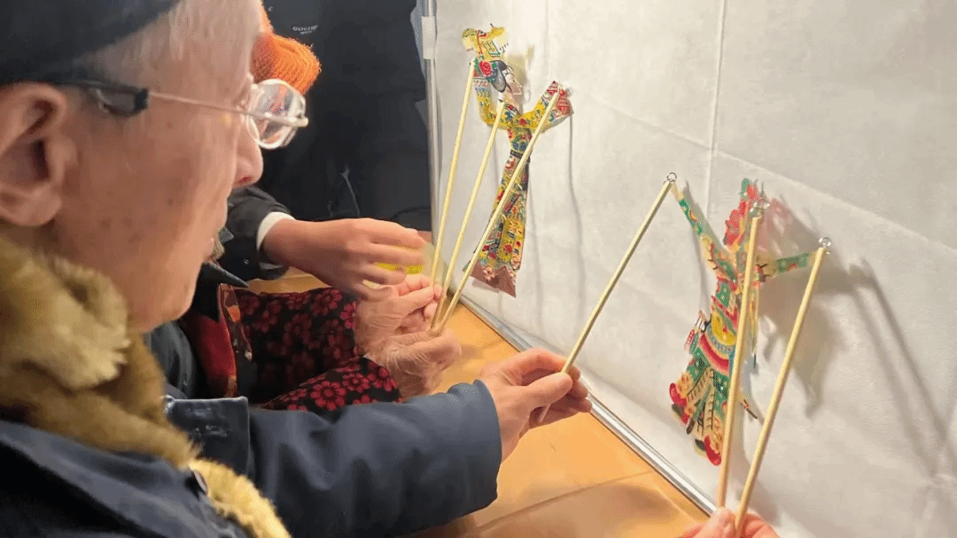 养老院舞台上,传统与现代交织碰撞。皮影戏版《江南style》活力上演,人偶随乐舞动,逗得老人开怀。表演后,志愿者们邀请老人体验皮影,耐心教其操控,老人们虽手法生疏却兴致盎然。随后舞龙表演精彩亮相,彩龙昂首盘旋,气势非凡,老人们沉浸其中,赞叹不已,深深领略了传统与现代融合之美。