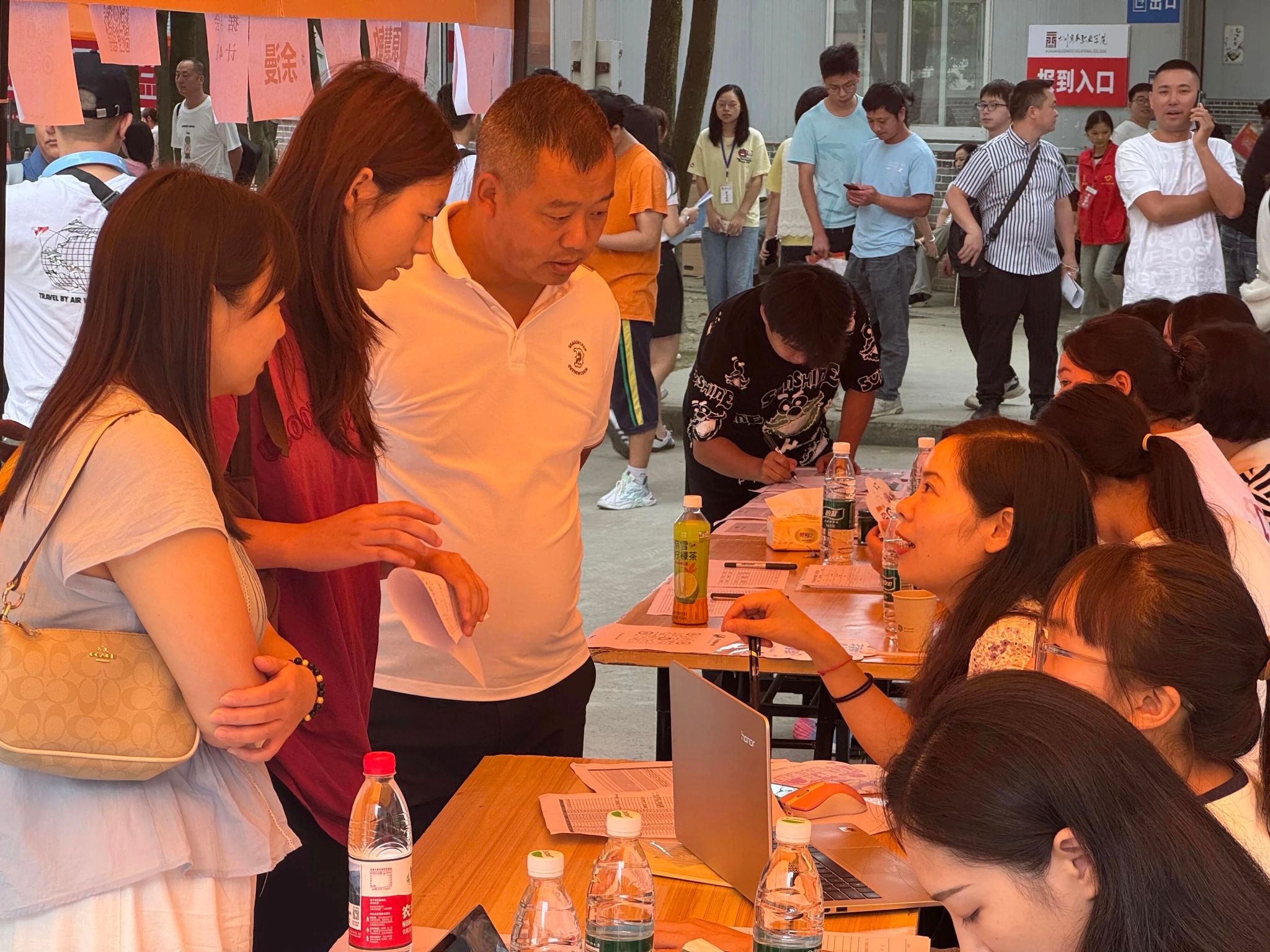 服务细,贴心周到。会计系的新生服务点热闹非凡。志愿者们耐心为会计系新生解答疑惑,从报到流程到会计专业的学习,事无巨细。老师们也在一旁,让大家对会计专业的学习和大学生活有了更清晰的认识。