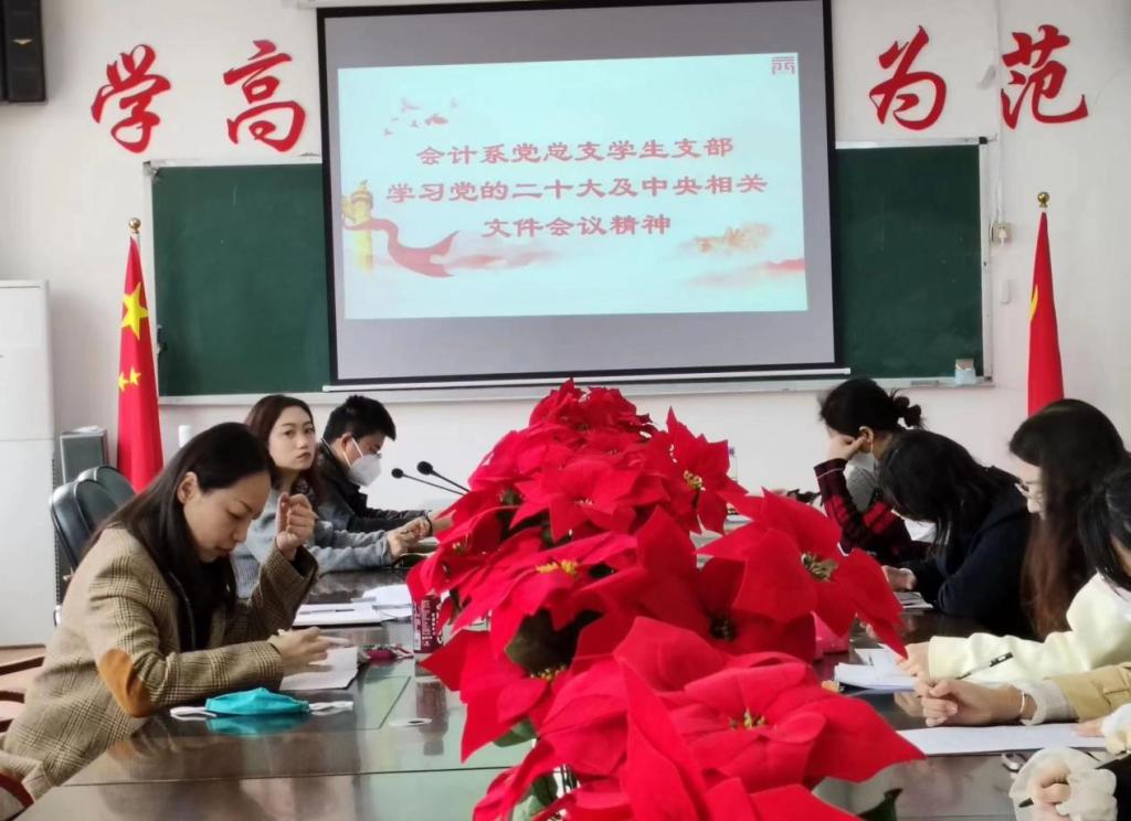 为深入学习贯彻党的二十大精神,坚持不懈用习近平新时代中国特色社会主义思想凝心铸魂。3月14日,会计系学生支部和教工支部在文家校区1103会议室分别召开2022年度组织生活会,开展党员民主评议活动。