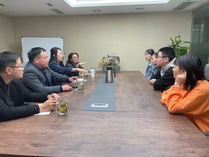 最后,老师们又与在此企业参加工作的4名学生进行了亲切座谈,刘主任向同学们了解工作生活环境、工资福利等情况,表达了学院对他们的关心与期待。同时,企业对今年会学生给予了很高的评价,希望能有更多的学生到企业发展,并表示企业会积极与学院合作,实现校企双赢。