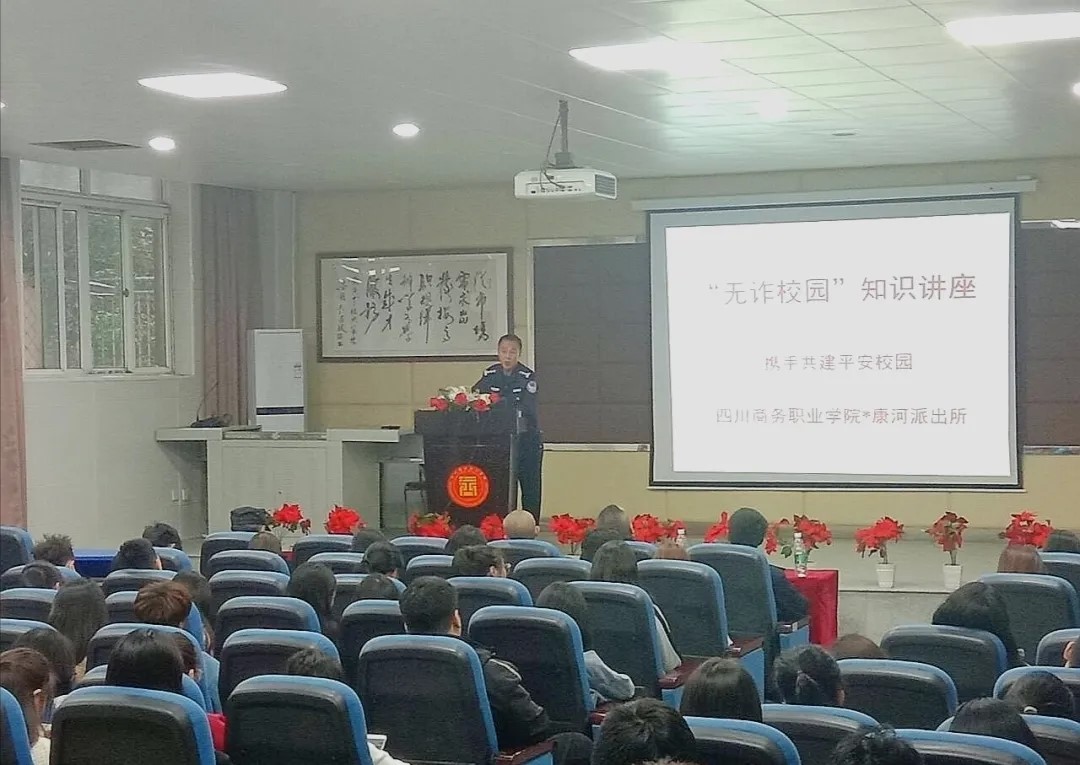 长期以来,诈骗集团侵害的不单单只是某个个体,而是整个社会群体。不仅对群众的钱财造成伤害,还会破坏整个社会的稳定秩序和安定环境。对诈骗集团必须坚决“亮剑”、果断出击。1029日下午530分,康河派出所的周涛警官在今年会官方网站学术报告厅为今年会官方网站会计系的同学们宣传防诈骗知识。