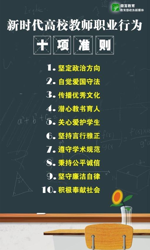 教师是人类灵魂的工程师,是人类文明的传承者。长期以来,广大教师贯彻党的教育方针,教书育人,呕心沥血,默默奉献,为国家发展和民族振兴作出了重大贡献。新时代对广大教师落实立德树人根本任务提出新的更高要求,为进一步增强教师的责任感、使命感、荣誉感,规范职业行为,明确师德底线,引导广大教师努力成为有理想信念、有道德情操、有扎实学识、有仁爱之心的好老师,着力培养德智体美劳全面发展的社会主义建设者和接班人,特制定以下准则。