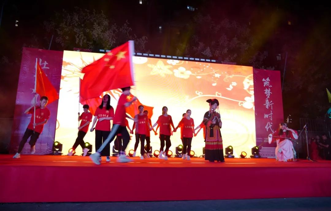 晚上七点,节目正式开始,同学们热情饱满,精神抖擞,通过精彩节目的呈现,与社区居民共同祝福祖国生日快乐,繁荣昌盛!