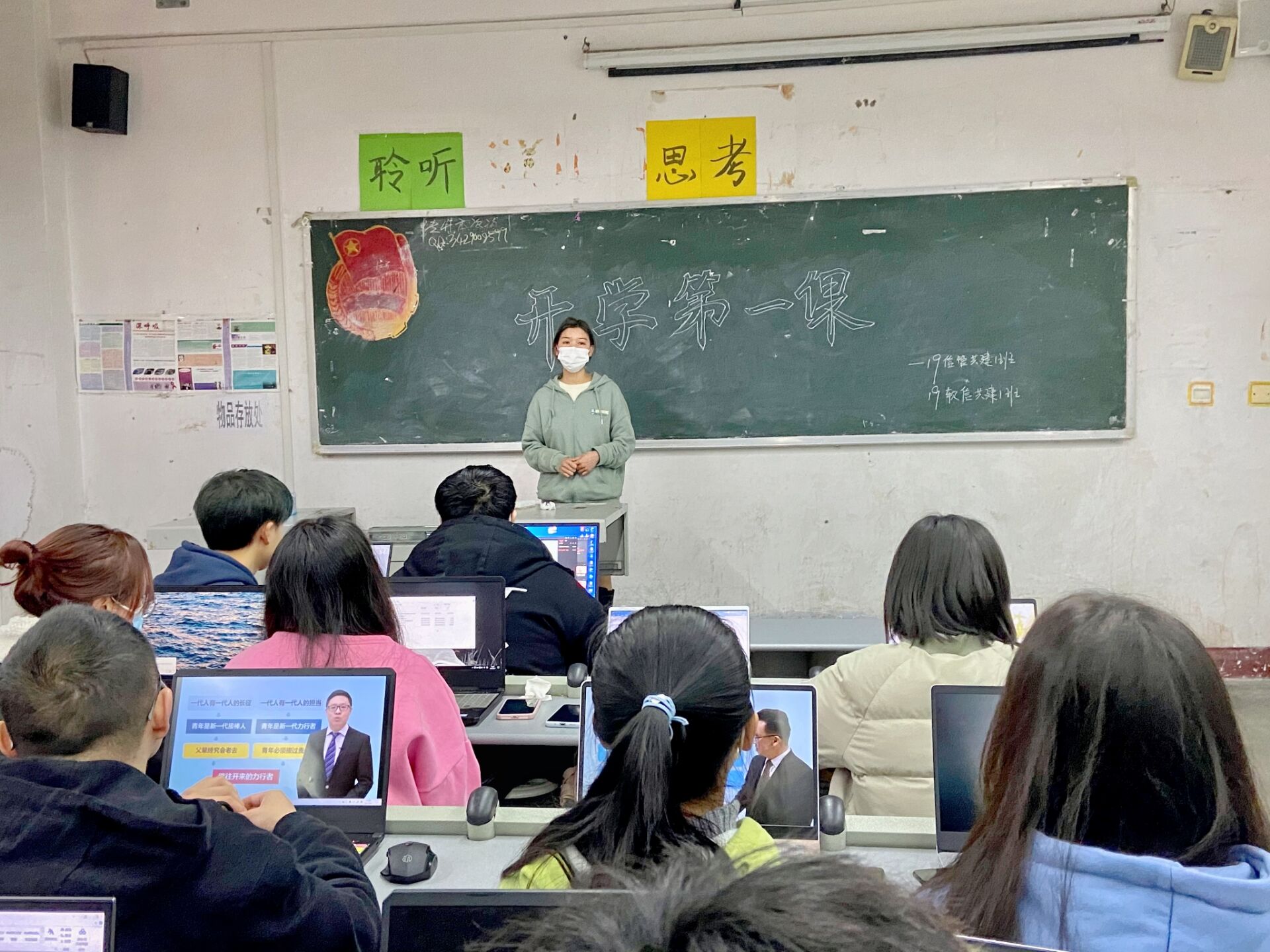 本次活动由各班组织在教室观看“开学第一课”,内容是学习习近平总书记关于四史的重要论述,引导青年学生在学习实践中树立远大理想,在奋发有为中践行初心使命,把使命勇担在肩,切实增强同学们在实践中守初心、担使命的思想自觉和行动自觉。
