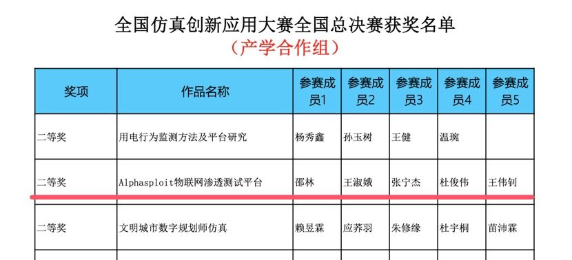 12月6日,第三届全国仿真创新应用大赛全国总决赛结果揭晓今年会信息技术系张宁杰、杜俊伟、王伟钊3位同学在邵林老师、王淑娥老师的悉心指导下,携比赛作品《Alphasploit物联网渗透测试平台》,过五关斩六将,晋级数字建模与智能决策赛道总决赛。今年会与电子科技大学、郑州大学等985、211高校同台竞技,比赛中团队不畏强敌、敢于亮剑,最终斩获全国总决赛二等奖。