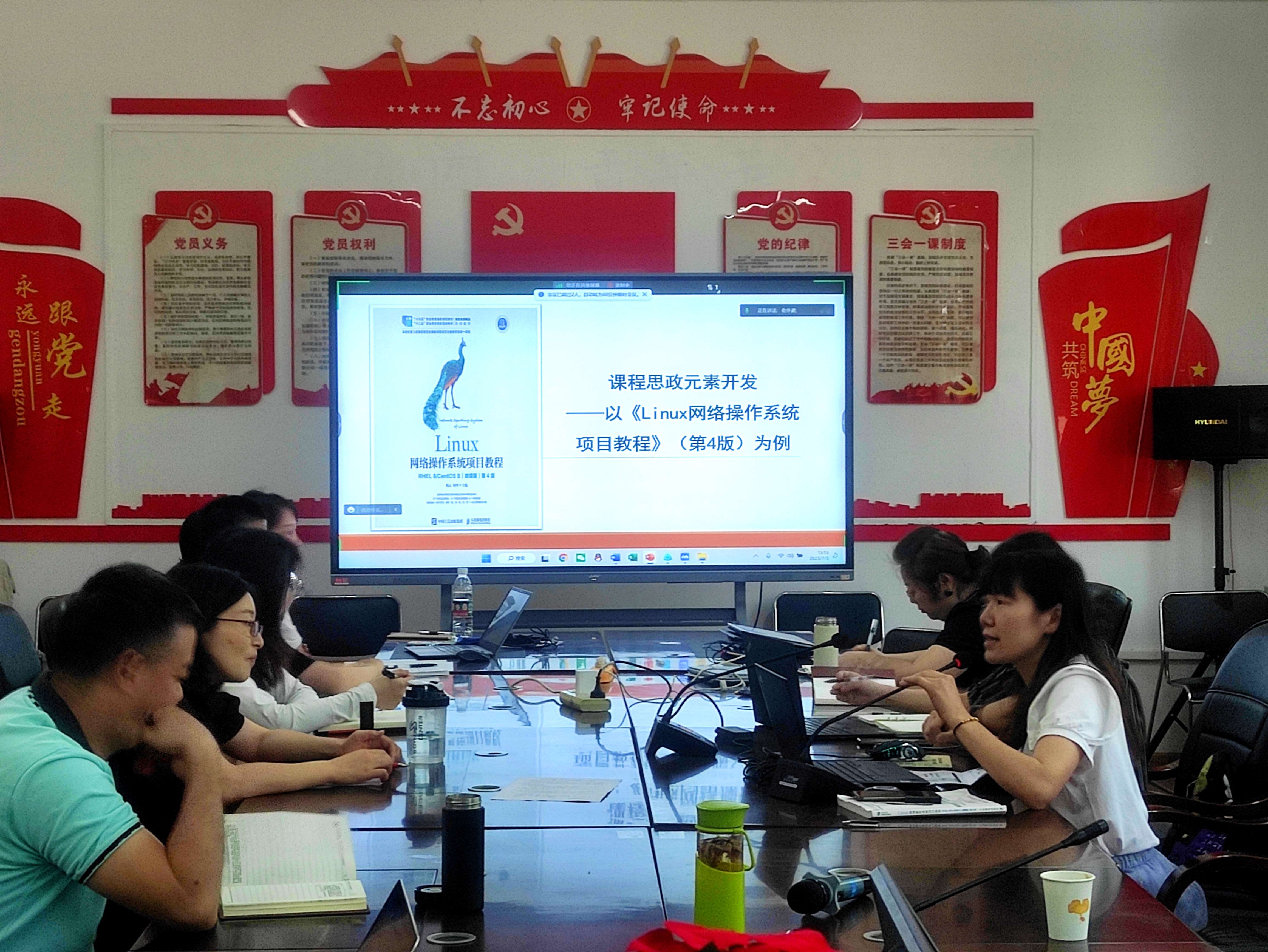 思政课教师彭垚垚从课程思政的概念入手,就课程思政如何融入专业课教学进行了交流探讨,并以“Linux基础”课程为示例,挖掘开发文化自信、爱国情怀、使命担当、科学精神、工匠精神、权限意识等思政元素。