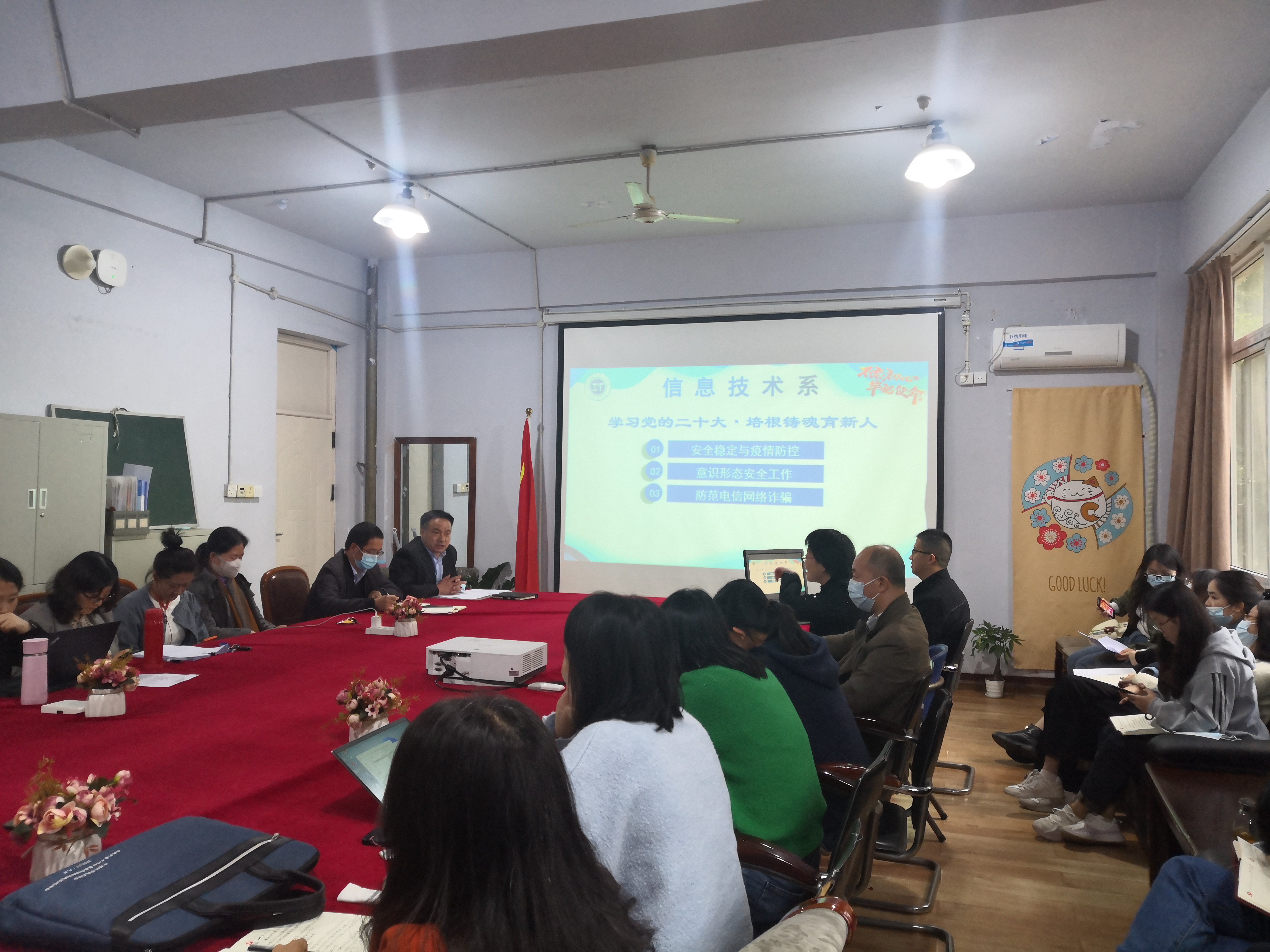 11月1日,信息技术系在文家校区悟道楼举行了系部理论学习会议暨主题党日活动,全系教职工参加。
